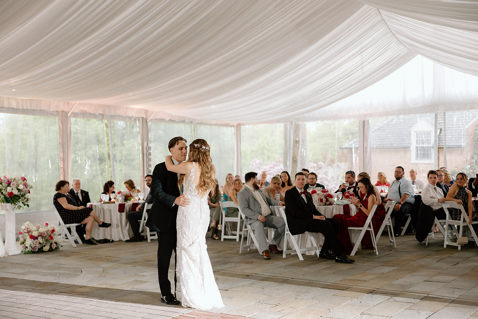 Drumore Estate’s Grand Tent holds up to 400 guests. There are also two climate-controlled venues. The Carriage House and Ballroom, which seats 150 and 80, respectively. These spaces can be used for smaller events or provide optional uses like dancing, ceremony, or cocktail hours. They also provide great contingency backup.