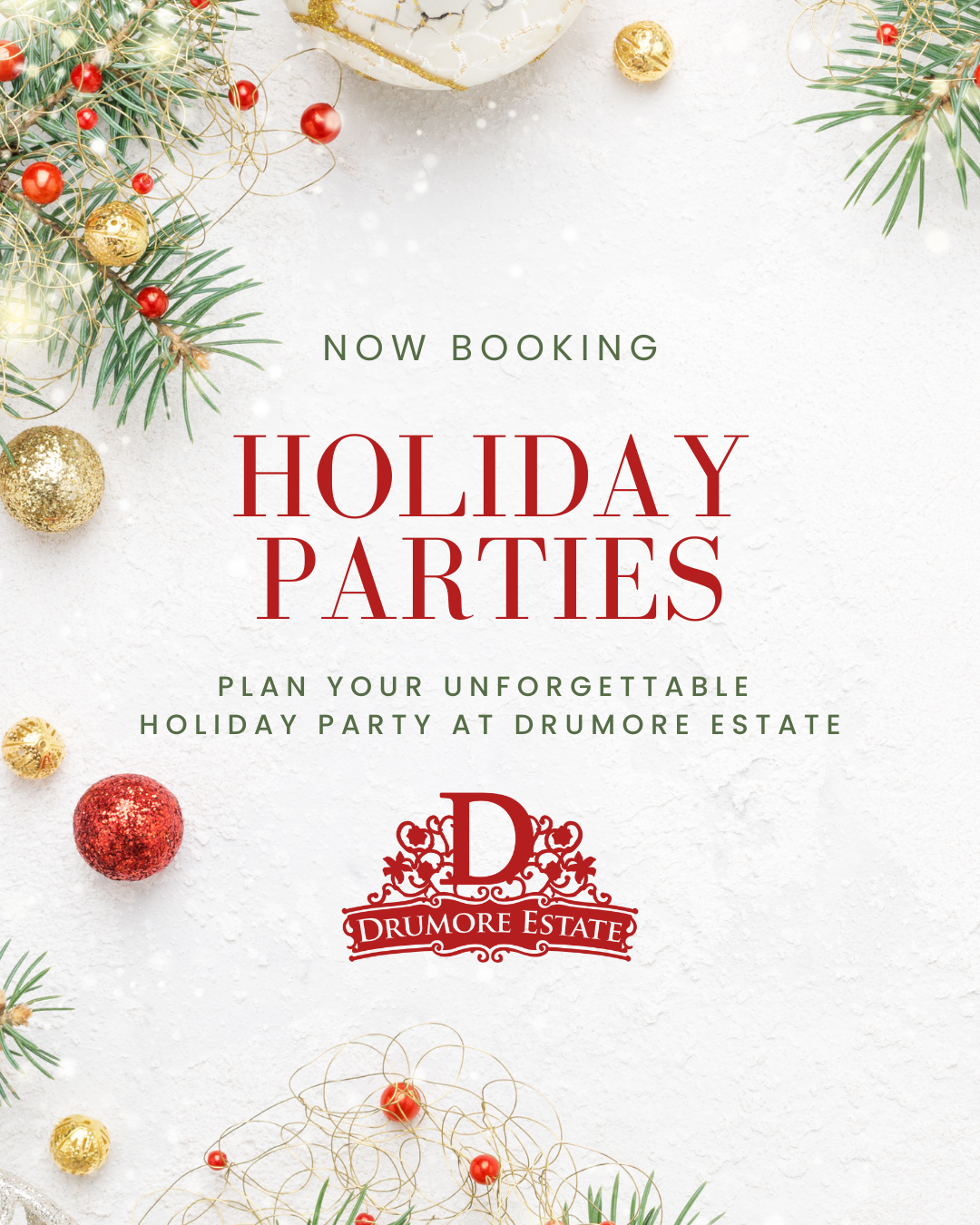 Unlike restaurants or hotel ballrooms, Drumore Estate offers exclusive use of the property for your event. You and your guests will enjoy complete privacy in a setting that radiates holiday charm, sparkling chandeliers, warm fireplaces, and beautifully decorated event spaces.